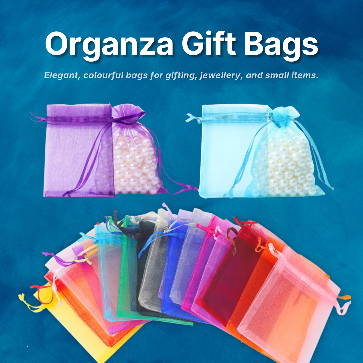 Durable, vibrant organza bags for gifting, jewellery, door gifts, hampers and small items. Available in multiple sizes and colours.